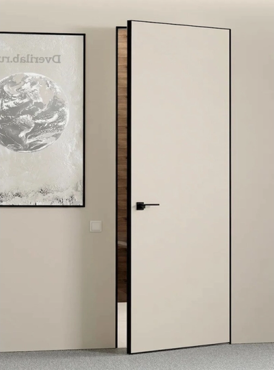 Скрытая дверь Инвизибл под покраску в скрытом коробе. Грунтованное покрытие для дальнейшего декорирования краской. Допустимо использование в помещениях с повышенной влажностью. Безопасно для здоровья и окружающей среды. Можно красить или клеить обои. Устанавливается вровень со стеной.