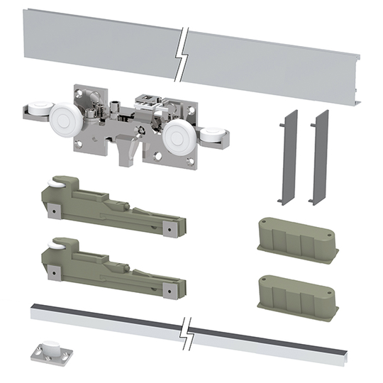 Невидимая раздвижная система Hidden предназначена для установки на деревянные межкомнатные двери весом до 40 кг, шириной до 1150 мм и толщиной полотна от 40 мм. Входящие в комплект два доводчика обеспечивают плавное открывание и закрывание двери. Верхние и нижние ролики с подшипниками гарантируют мягкое и бесшумное скольжение по направляющим. Инновационные решения с большим диапазоном регулировок способствуют простой сборке и позволяют компенсировать неровности поверхностей стен и пола. Направляющие входят в комплект.