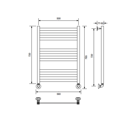 Сечение труб: горизонтальные - круглое; вертикальные - круглое; Подключение к системе водоснабжения; Универсальное подключение; Телескопический держатель; Материал: нержавеющая сталь; Теплоотдача: 50х60 - 333, 40х80 - 380; 50х80 - 433, 50х100 - 566, 50х120 - 698; Площадь обогрева, м3: 50х60 - 8, 40х80 - 11; 50х80 - 11, 50х100 - 14, 50х120 - 17.