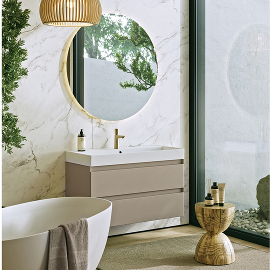 • Тумба Aqwella Geometria 100 цвет "морская дюна" с керамической раковиной Aqwella Вилис 100.