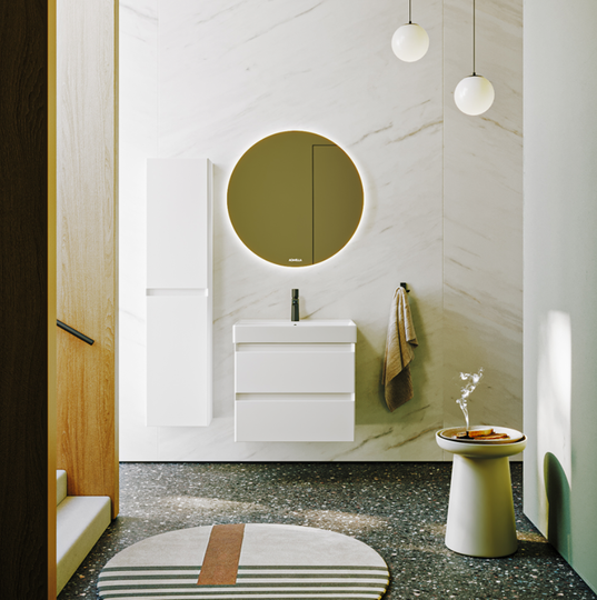 Зеркало Aqwella Moon 80 оснащено светодиодной подсветкой, сенсорным выключателем и регулятором освещенности.