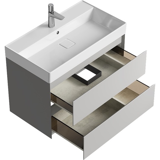 | Тумба с раковиной Aqwella Geometria 80 серый туман 2 ящика |