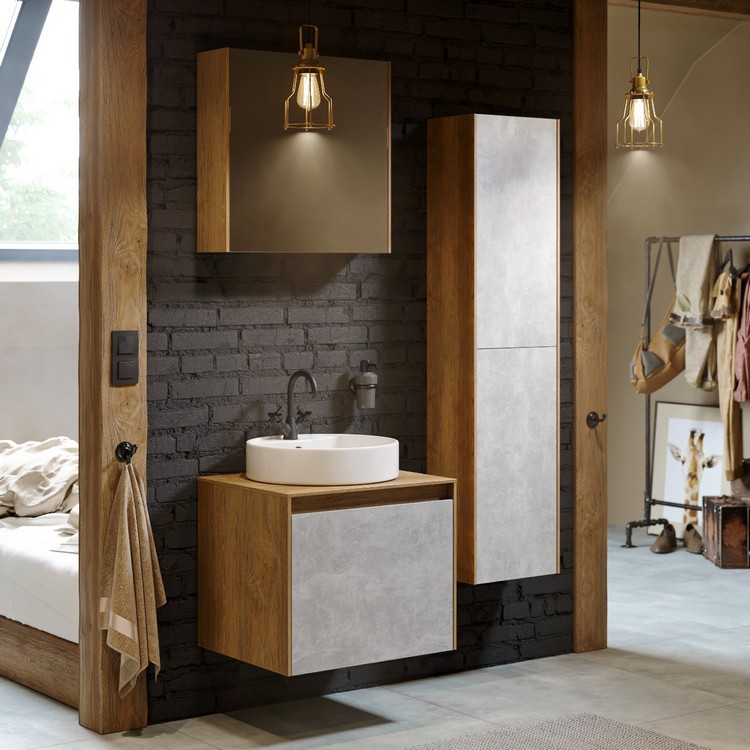Тумба Mobi 60 оснащена двумя ящиками: основным и внутренним, скрытым за фасадом. Направляющие ящиков обеспечивают плавное и мягкое закрывание. Внутренний ящик тумб укомплектован пластиковым разделителем для хранения различных мелочей. Внутренняя отделка ящиков комбинированная: боковины – цвет бетон светлый, дно – дуб балтийский. В комплект тумбы Mobi входит специальный сифон, позволяющий экономить пространство мебели. Фасады, боковины и столешницы из МДФ толщиной всего 10 мм. Подходит любой наставной умывальник.