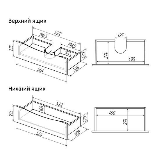 Тумба Grossman Виста 58 оснащена двумя вместительными ящиками с интегрированными ручками и скрытыми направляющими с доводчиком.