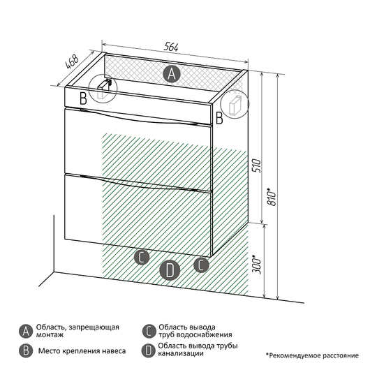| Тумба с раковиной Grossman Виста 58 белый глянец подвесная |
