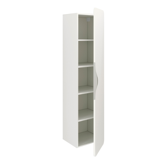 Пенал Skandi оснащен одной распашной дверцей (петли справа). Корпус выполнен из ЛДСП, а фасад - из МДФ. Внутри пенала расположены 4 полки, которые создают достаточно места для хранения всевозможных гигиенических принадлежностей и бытовой химии. Дверца мягко и плавно закрывается благодаря петлям с доводчиком. Пенал выпускается только в правом исполнении. Лаконичным завершением общей композиции является стильная хромированная ручка.