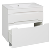 Тумба Olivia 80 оснащена двумя выдвижными ящиками на шариковых направляющих скрытого монтажа с доводчиками. Ящики легко открываются благодаря удобным вырезам на фасаде.