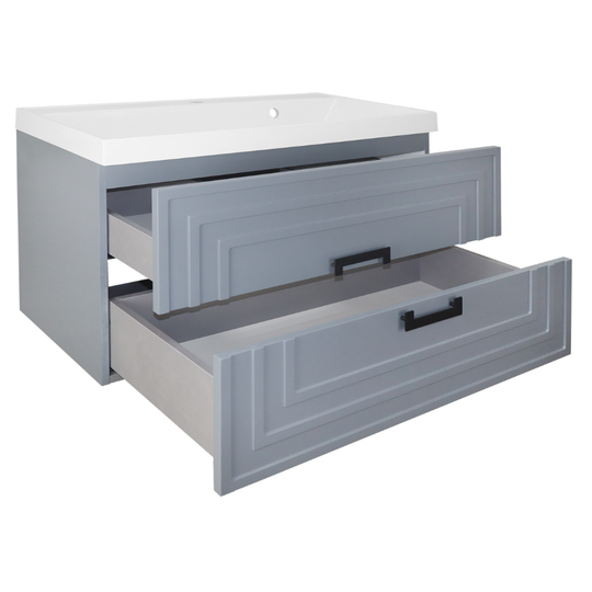 - Тумба Azario Armario 90/2 цвет "серый матовый" с раковиной из литьевого мрамора Classik 90.
