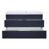 Тумба Эстима 100/2 оснащена двумя выдвижными ящиками на доводчиках скрытого монтажа. Корпус изготовлен из ЛДСП, фасады МДФ толщиной 16 мм. Корпус и фасады производства Kronospan. Бока и фасады крашеные итальянской эмалью.