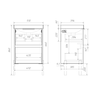 Подвесная тумба Comforty Селенга 50 с двумя вместительными выдвижными ящиками. Направляющие ящиков оборудованы системой плавного закрывания. Верхний ящик открывается черной профильной ручкой. Ручку устанавливать необязательно. Верхний ящик можно открыть за нижний край фасада. Для открытия нижнего ящика нужно потянуть верхний край фасада. Ящики выполнены из ВЛДСП контрастного черного цвета. Тумба подготовлена для подключению коммуникаций снизу и сзади.