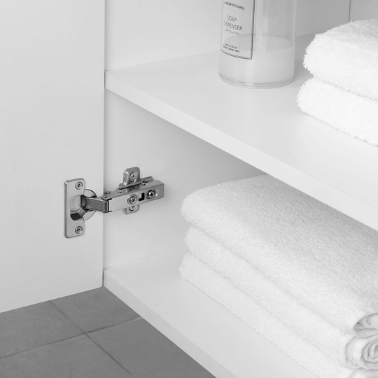 Тумба Итана Alexa 50 покрыта ПВХ пленкой с высокой степенью глянца. Петли с доводчиками обеспечивают плавное открывание и закрывание дверцы. Ручки интегрированы в фасад, что исключает возможность случайного удара о фурнитуру.