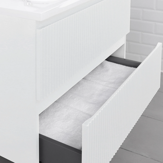 Тумба Итана Kate 80 с фактурными фасадами оснащена двумя удобными ящиками для хранения и качественной фурнитурой с доводчиками. Изготовлена из МДФ и покрыта ПВХ пленкой.