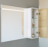 Светодиодная подсветка на зеркале включается с помощью сенсорного выключателя. Само зеркало может крепиться как с вертикальным, так и с горизонтальным положением подсветки. Навесной шкафчик приобретается отдельно.